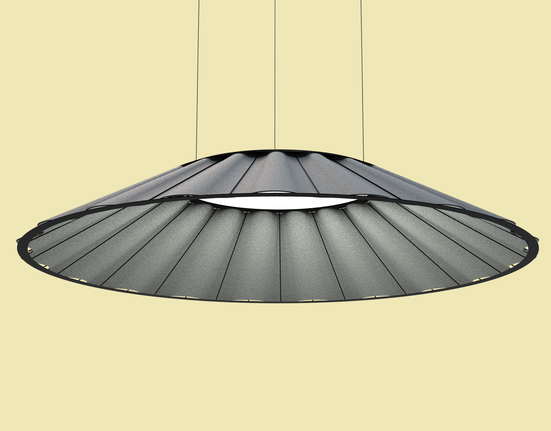 The Acous Hat is a designer acoustic luminaire with its shape resembling a hat from our collection of pendant lights. The housing is made of acoustic shade connected to create a homogenous appearance. With specially formed LED modules as its power source, that gives it a magnificent look and feel. Well-suited luminaire in architectural spaces, reception area, and cafeteria/dining area. Available in sizes ∅1000mm with unique acoustic shade options.