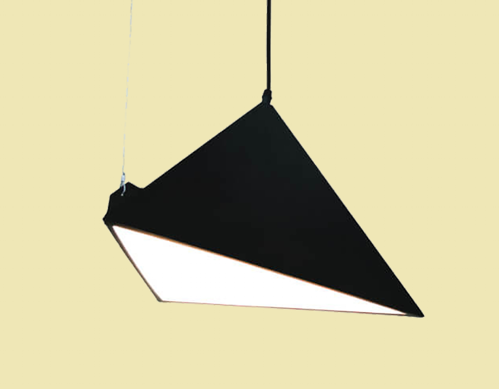 The Pyramid is a unique triangular pyramid-shaped luminaire that offers both style and functionality. Suspended from the ceiling with cable and GI wire, the fixture allows for adjustable light beam positioning. The PMMA diffusers ensure clean, glare-free illumination. The Pyramid design includes optional adjustment wires, giving you the flexibility to customize the lighting effect. Available in various RAL powder coat colours, this luminaire can be tailored to complement your decor. Its innovative design and versatile installation options make it a standout choice for modern spaces.
