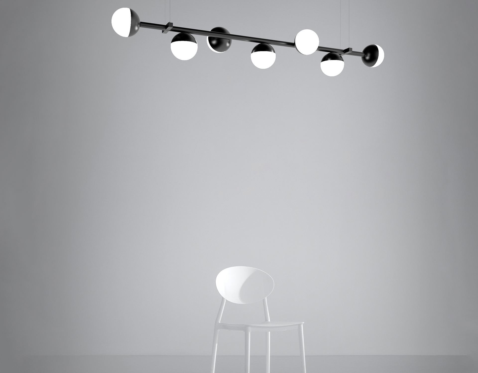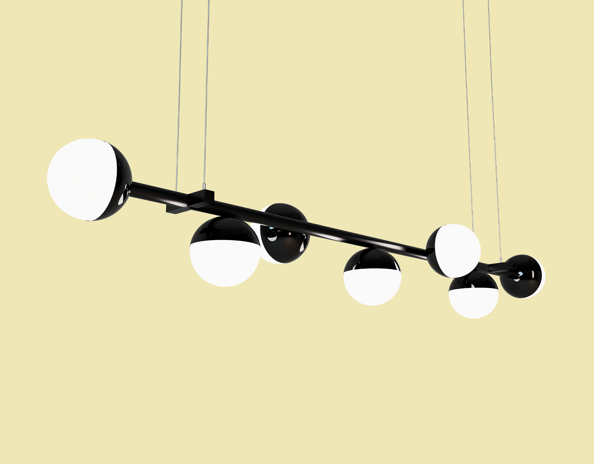 The Ozo Cluster luminaire features multiple glass globes attached to a central rod, arranged at different angles to ensure complete light distribution. Available in configurations of 3, 5, and 7 globes, it provides versatile illumination suitable for various settings such as dining areas, lobbies, and upscale residential spaces. Custom powder coating options are available in RAL colours, allowing it to fit seamlessly with diverse interior designs. The Ozo Cluster unique design and effective light output make it a stylish lighting solution.