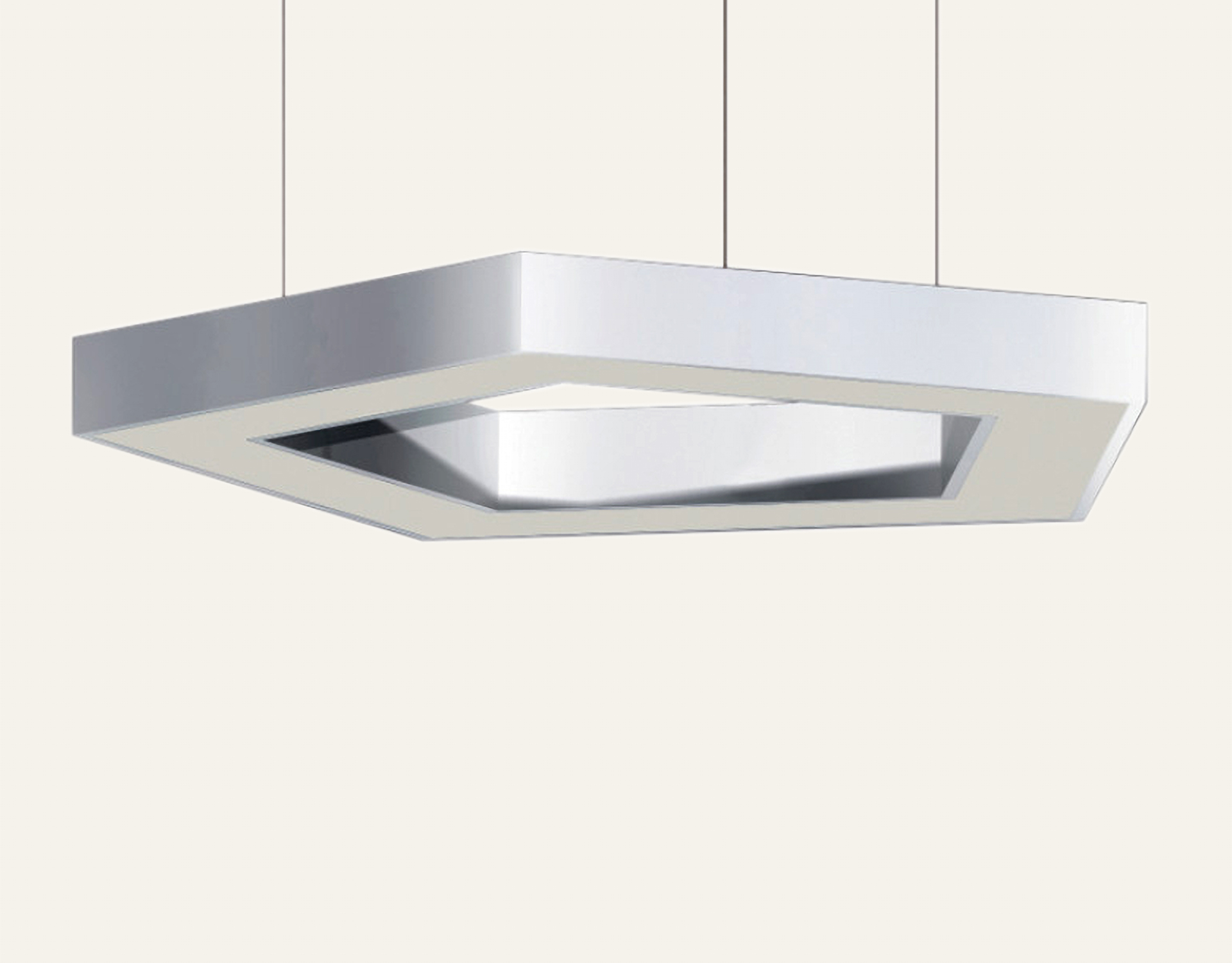 Femkant-C features a concentric pentagon shape with aluminium housing and a powder-coated finish. PMMA diffusers ensure flawless, glare-free illumination. Available in sizes from 450mm to 2400mm in ∅, it can be suspended, surface-mounted, or recessed. With powder coating options based on RAL colours, the Femkant-C is perfect for creating striking lighting solutions in modern office and commercial settings.