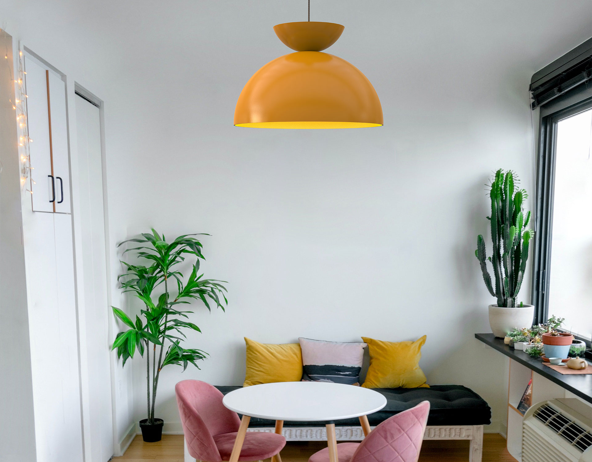 Oscura is a pendant ceiling light in the shape of a dome and an inverted dome on the top for indirect lighting. Made up of a spinned aluminium metal housing, either an LED module or a bulb can be used as a light source. The fixture has varied inner and outside body colours with a lamp as a light source. Available in ∅300 mm, ∅450 mm, and ∅600 mm sizes with different powder-coated body finishes.